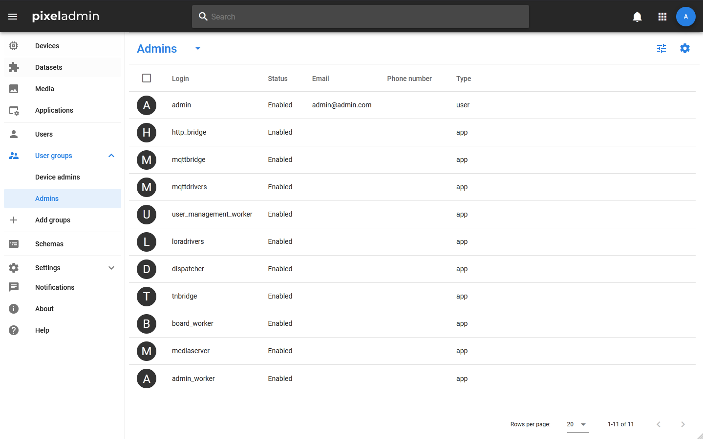 Groups are displayed in the menu, there are also controls for them: to add a new group, use the menu item + Add group, for editing, deleting and viewing information — action button in the menu bar. If the user does not have rights to edit the group, then clicking the action button will open an information window, if there is an edit window.