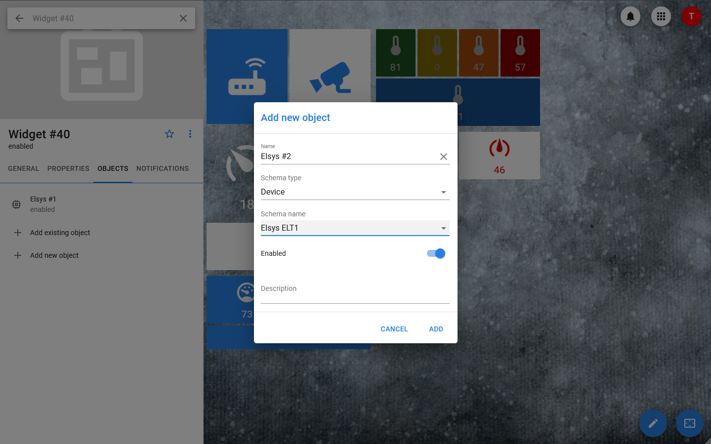 The button is linked to the object control, which is sent when the widget is clicked. It can be used to send controls with parameters, but in this case the parameter values are fixed and they can be changed only through the widget settings, and not through the dashboard itself.