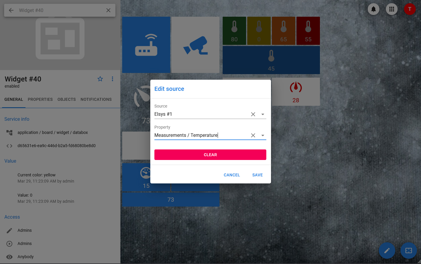 The property of the linked object can be selected as the source for the databox value. When you change the property of an object, the value of the date box will immediately take the same value, regardless of which display mode is selected: even if the value is hidden and only the icon is displayed, it will always be relevant and can be viewed in the widget card.